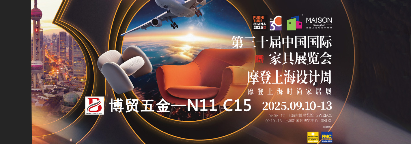 我司將于2025年9月10日-13日在上海浦東新國際博覽中心參加第30屆中國國際家具展覽會,屆時我司展覽公司最新和熱賣的功能鉸鏈配件,歡迎各位客戶參觀!