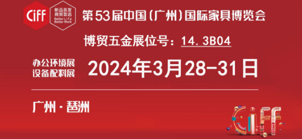 第53屆中國(廣州)國際家具博覽會辦公家具及配件將于3月28日-31日(第二期)在廣州琶洲會展中心舉行,我司的展位號是14.3B04, 歡迎各位貴賓參觀!